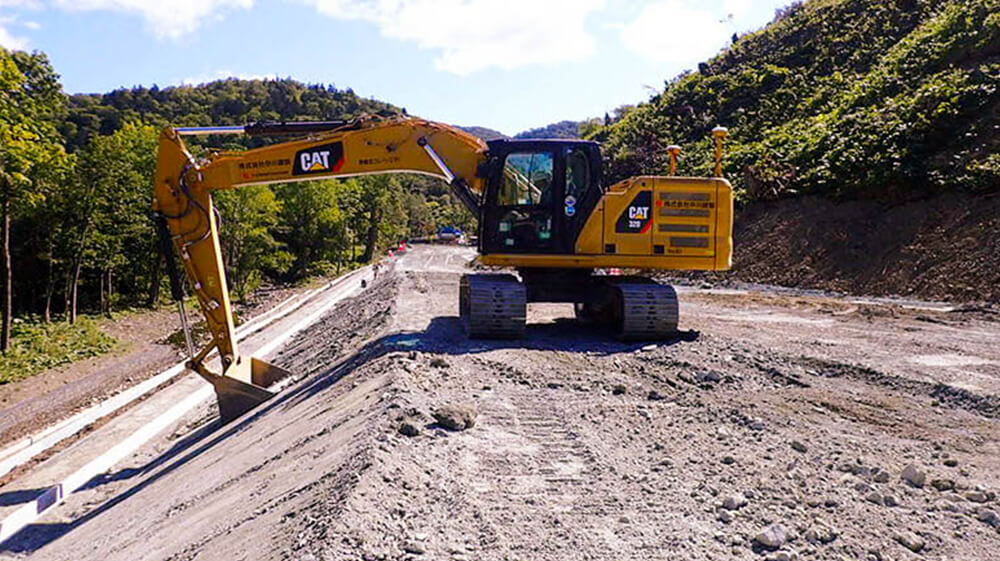 GPSが補足できない場所でのICT施工が可能で、林道等の狭い箇所を想定し導入。